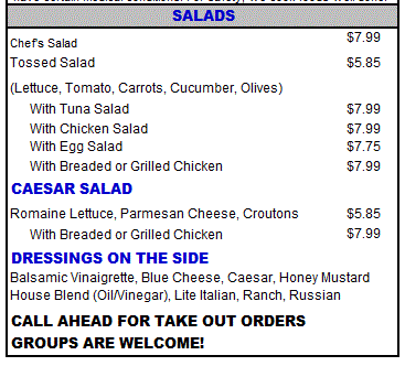 ADDITIONAL ITEMS ARE SHOWN ON MENU PAGE 2